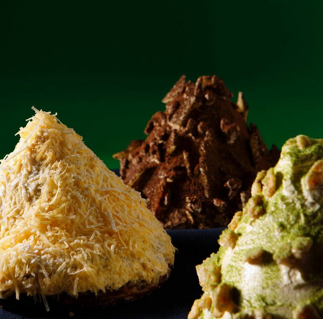 Panaderya Toyo has always been known for its innovative take on classic Filipino staples, and they’ve done it again with the bulkan (P480). Inspired by the majestic Mt. Mayon, the bulkan is a conical puff-pastry-based dessert filled with different flavors of infused cream.
