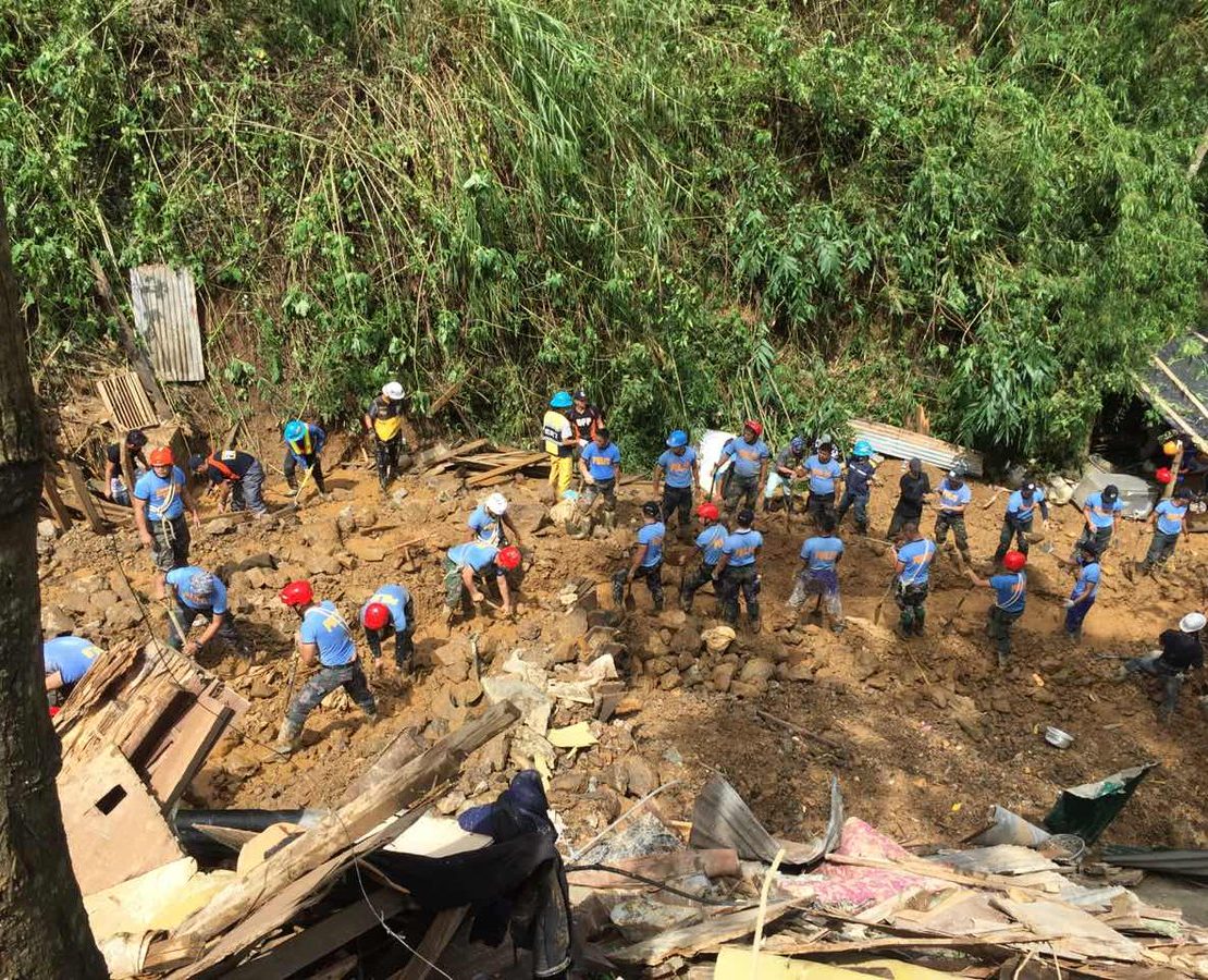 Rescuers, police, soldiers, and volunteers have been scrambling for hours through the massive pile of debris and mud in Itogon, Benguet after Typhoon Ompong heavily struck the far-flung town. They are looking for at least 40 people who remain missing after the typhoon triggered a fatal landslide that covered the makeshift shelters of dozens of residents.