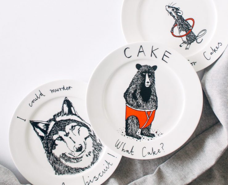 On this set of tableware, hungry badgers, bears in red underwear, and caped foxes crave…